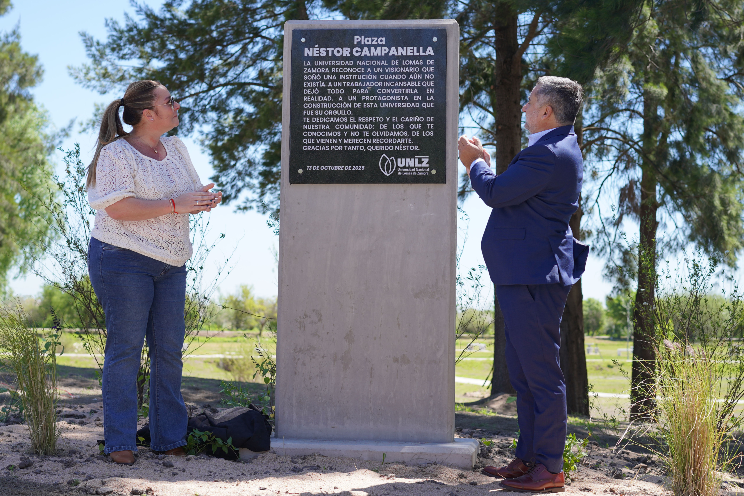 En el marco del 53º aniversario de la Universidad Nacional de Lomas de Zamora (UNLZ), se inauguró la Plaza Néstor Campanella, un nuevo espacio verde que reafirma el compromiso de la comunidad universitaria con la preservación del ambiente y el cuidado del ecosistema, y que rinde homenaje a uno de los funcionarios más queridos de la institución.
