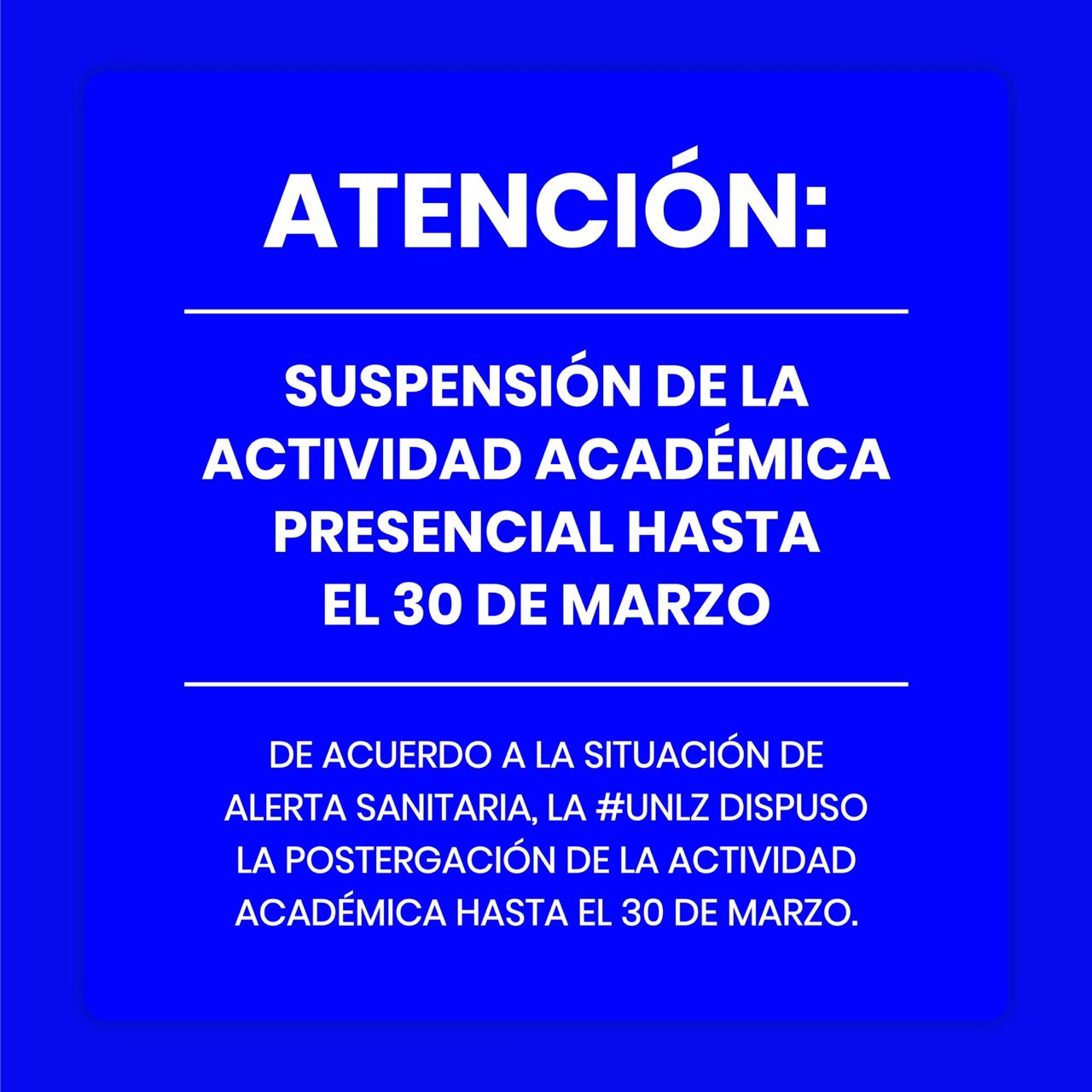 La Universidad Nacional de Lomas de Zamora dispuso el cese de la actividad académica hasta el 30 de marzo a raíz de la situación de alerta sanitaria y en concordancia con las recomendaciones del Ejecutivo Nacional.